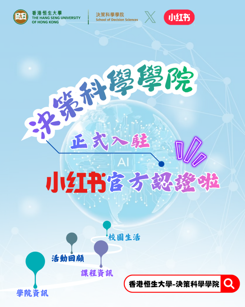 好消息! 決策科學學院的小紅書(RED)帳號成功獲得專業號認證。這標誌著提升學院品牌形象和數位存在的重要里程碑。